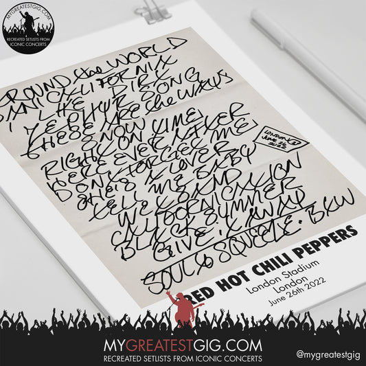 Red Hot Chili Peppers - London - Jun 26th 2022 Recreated Setlist Poster