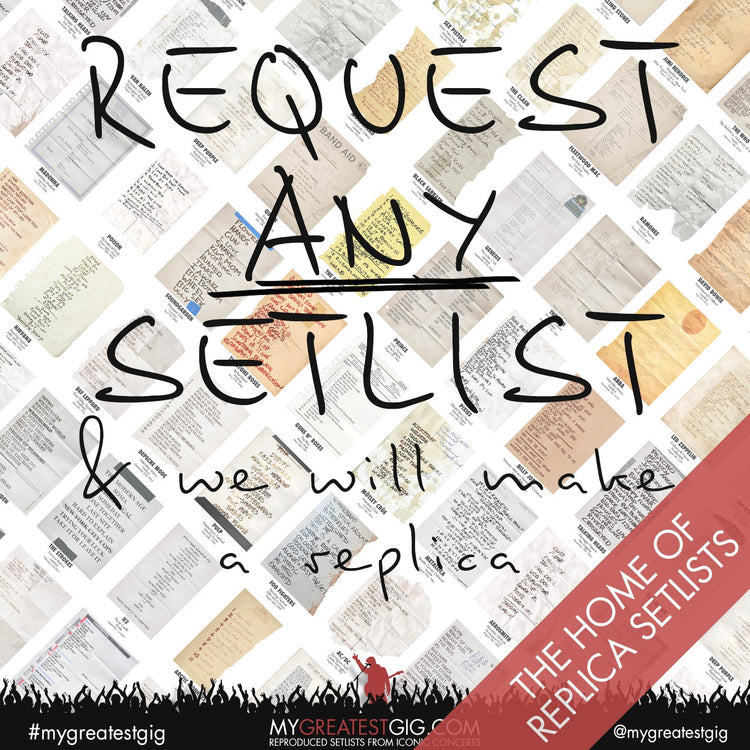We can replicate any setlist you would like!, get in touch today with your Greatest Gig and let us makes a unique piece of musical artwork for you.