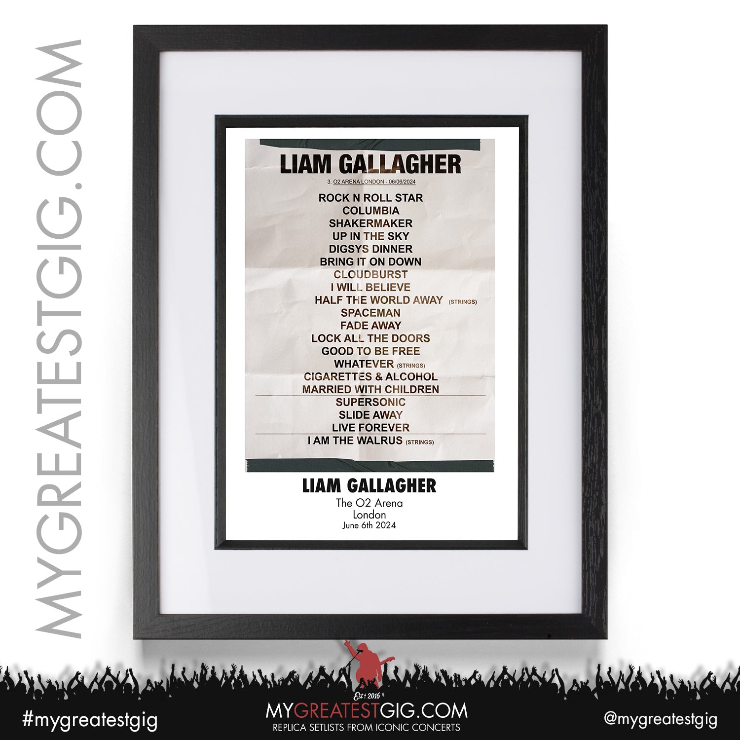 Liam Gallagher - O2 Arena - June 6th 2024 Replica Setlist Poster