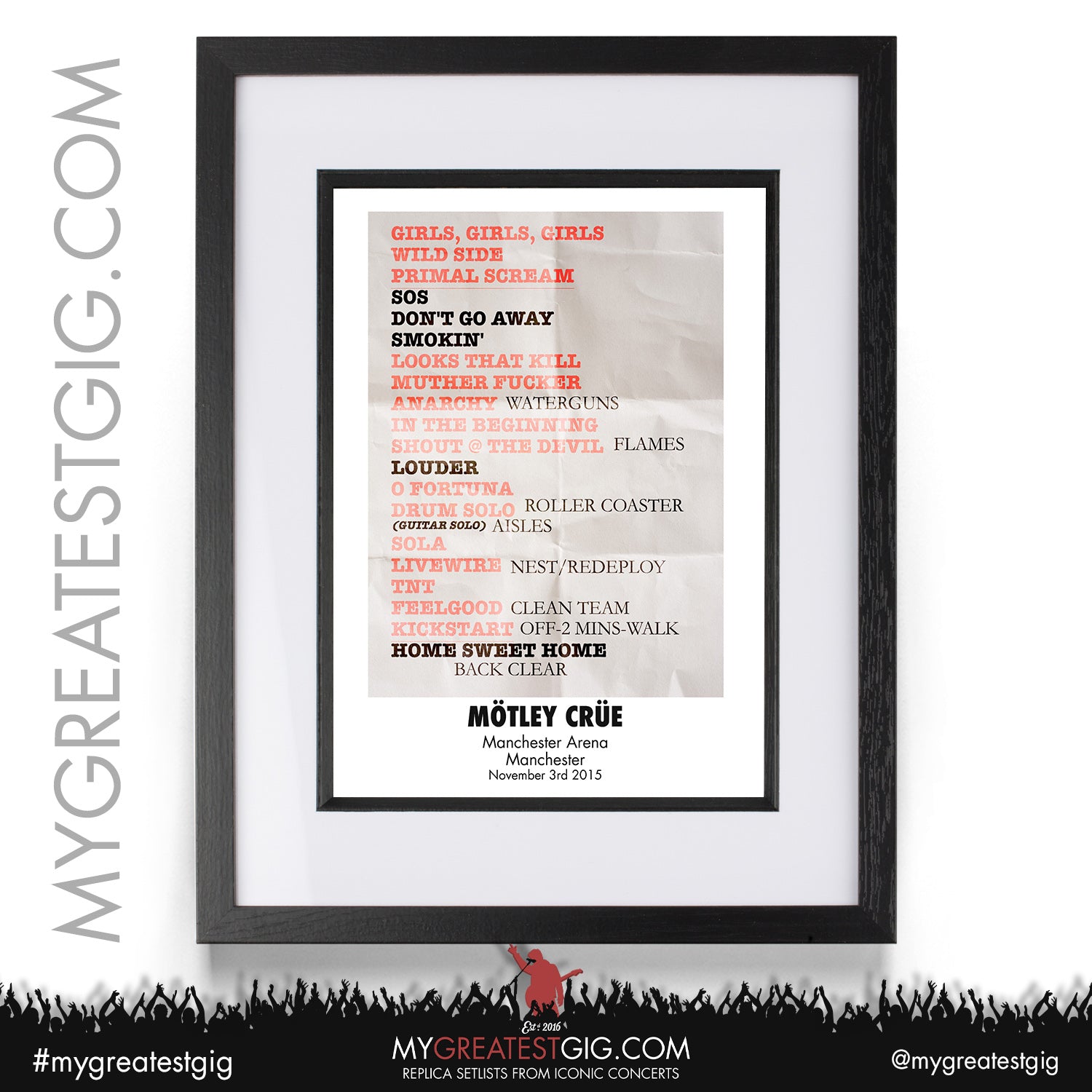 A Replica Setlist from the Mötley Crüe 2015 Manchester gig
