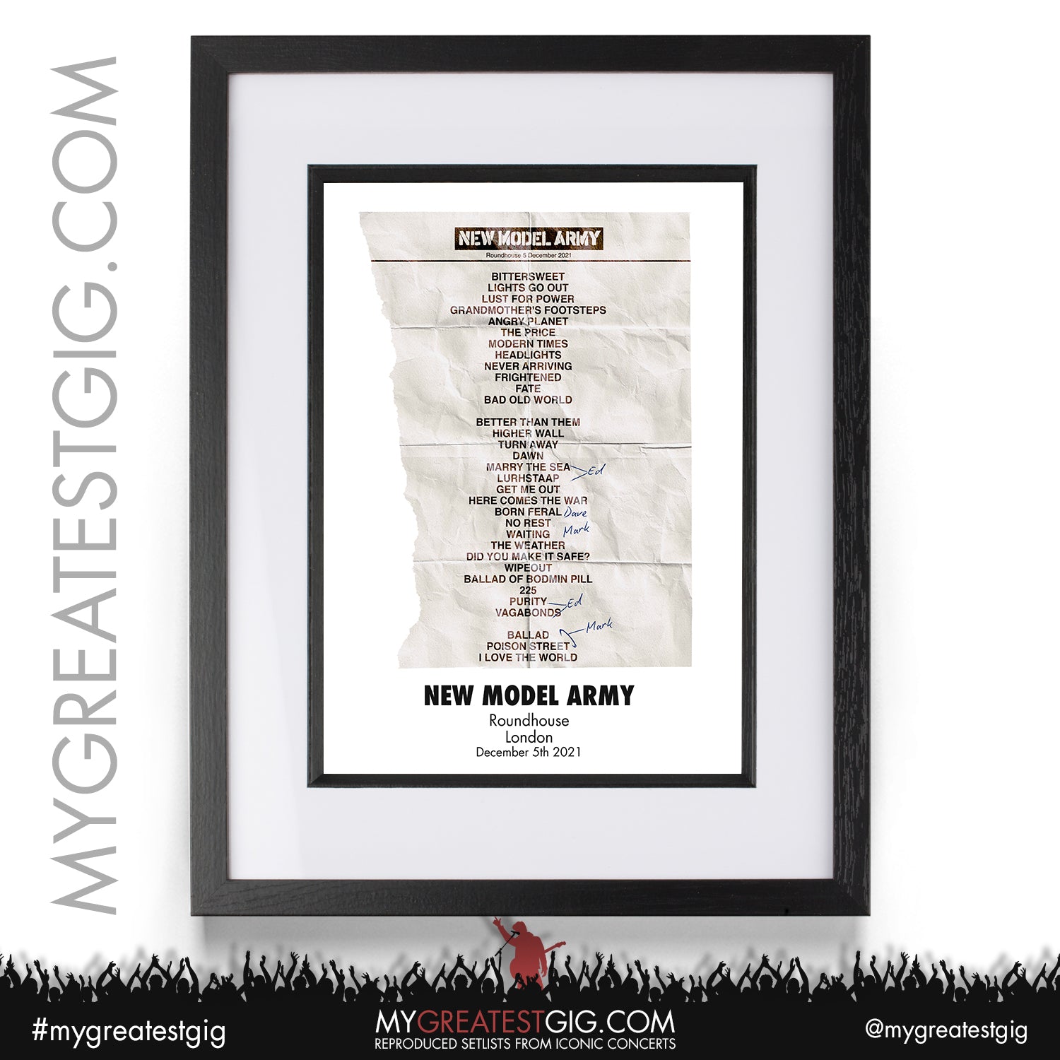 New Model Army - London - December 5th 2021 Recreated Setlist Poster