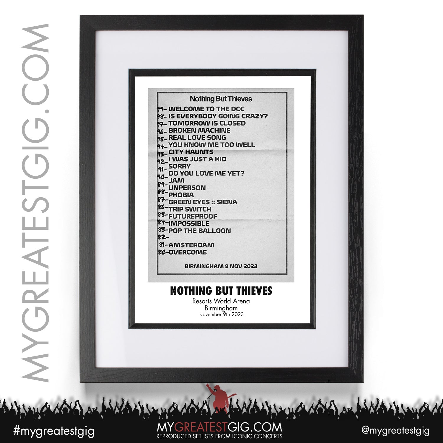 Nothing But Thieves - Birmingham - November 9th 2023 Recreated Setlist Poster