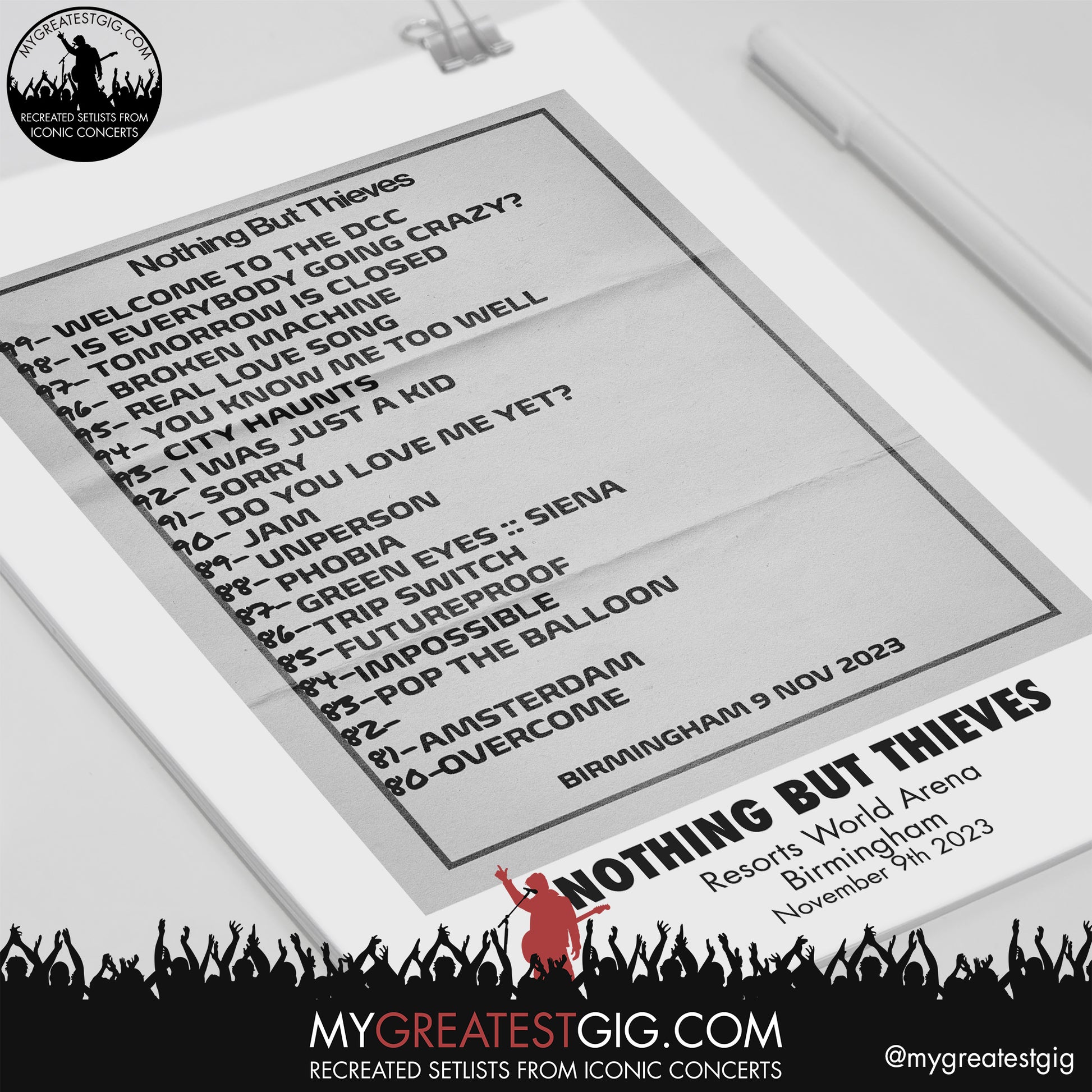 A Recreated Set List from the Birmingham Nothing But Thieves 2023 concert