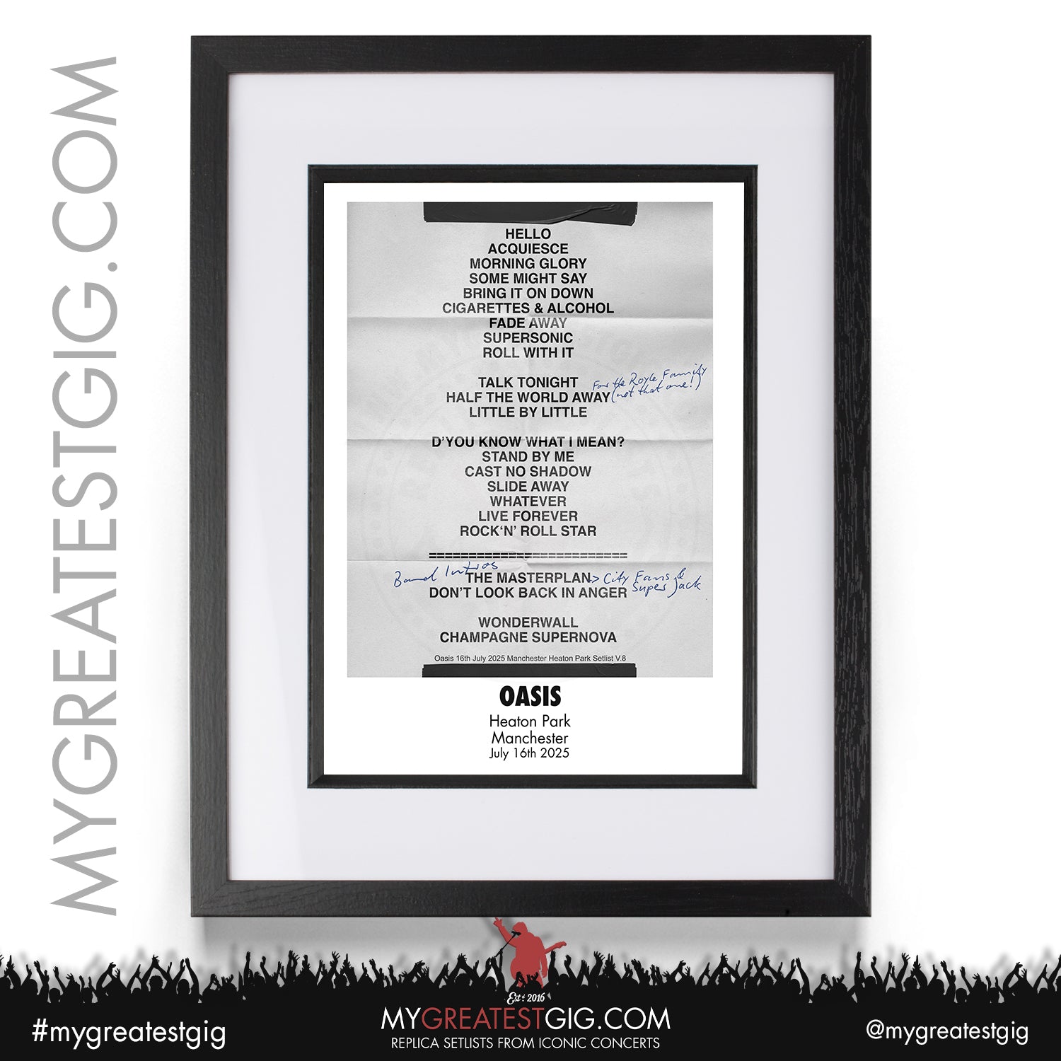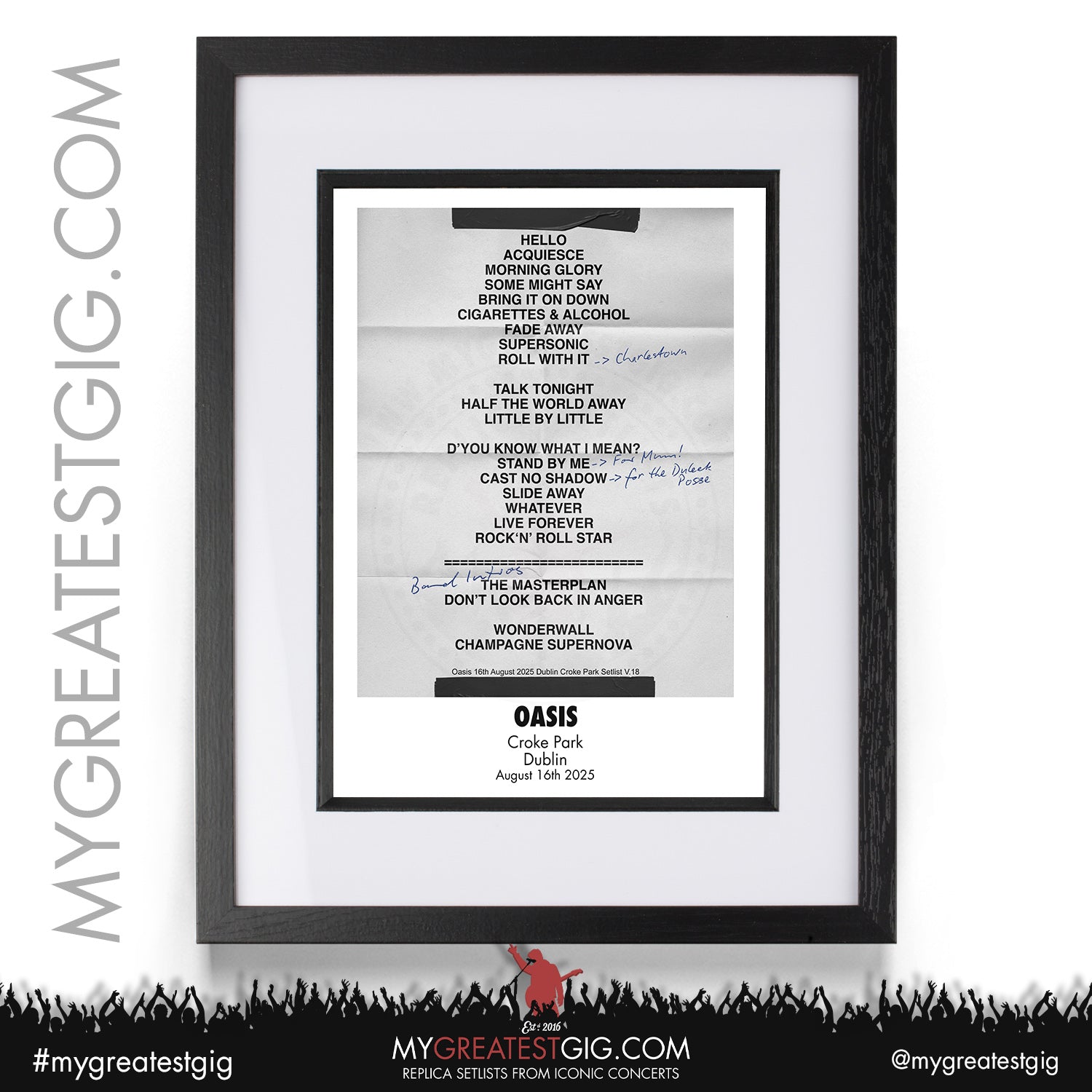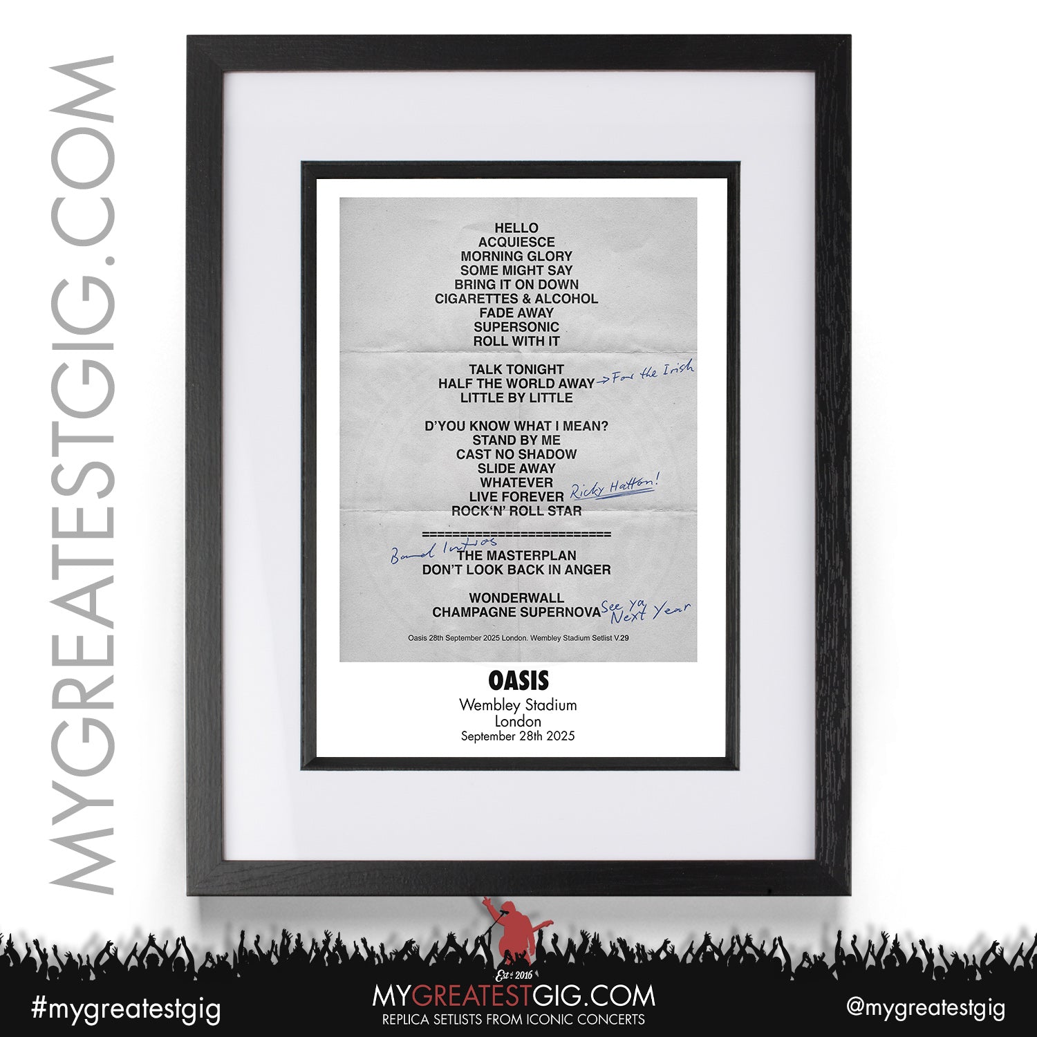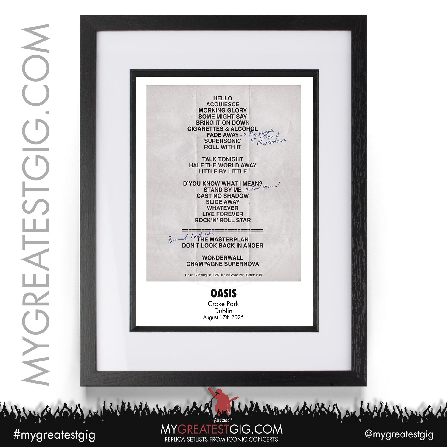 The wait is over. Oasis are back in 2025—and we’re celebrating their first live shows since 2009 with accurate replica setlists from this once-in-a-generation tour. Whether you were belting out Live Forever at Wembley Stadium, reliving Manchester pride at Heaton Park, or witnessing history at Croke Park, this is your chance to own a piece of Britpop legend.