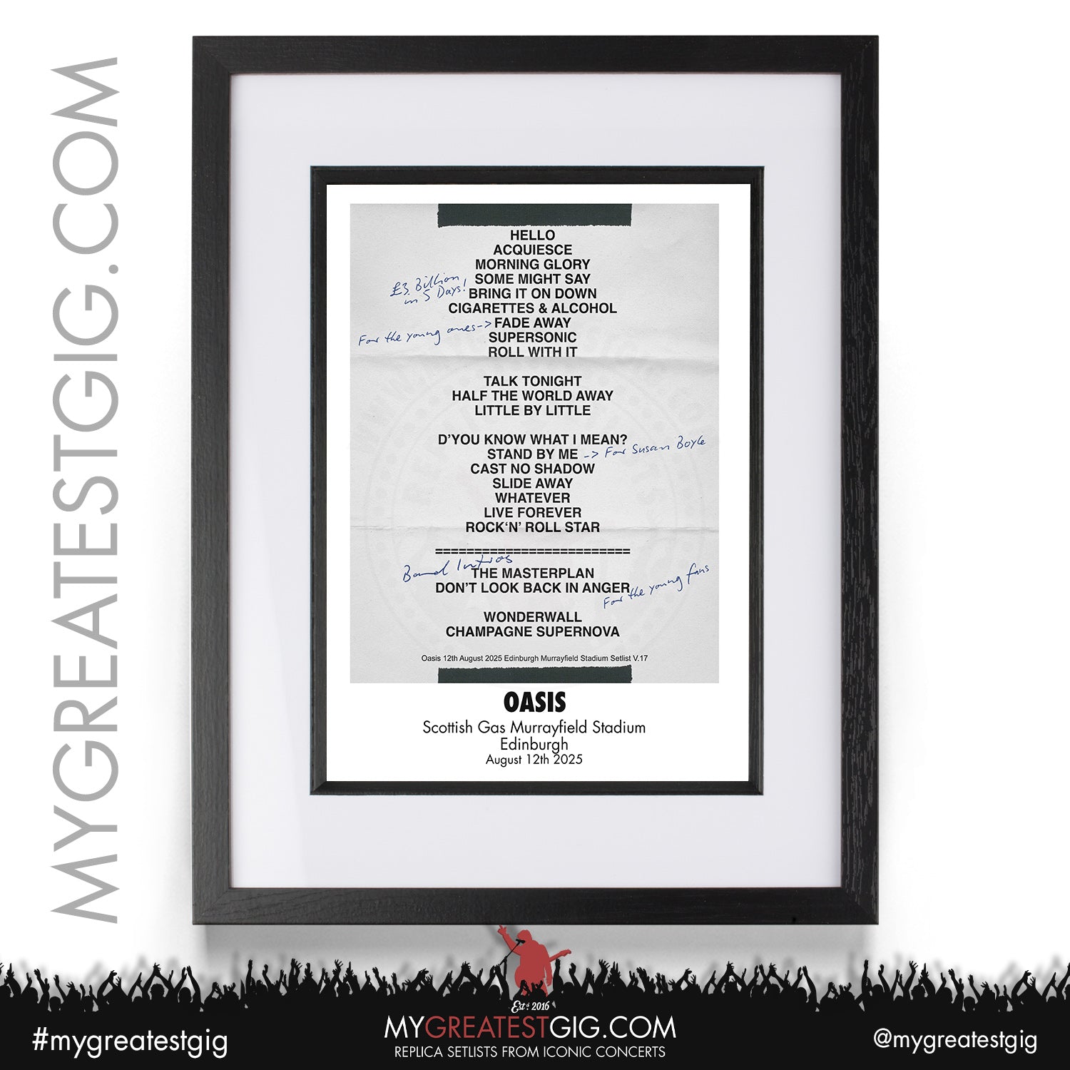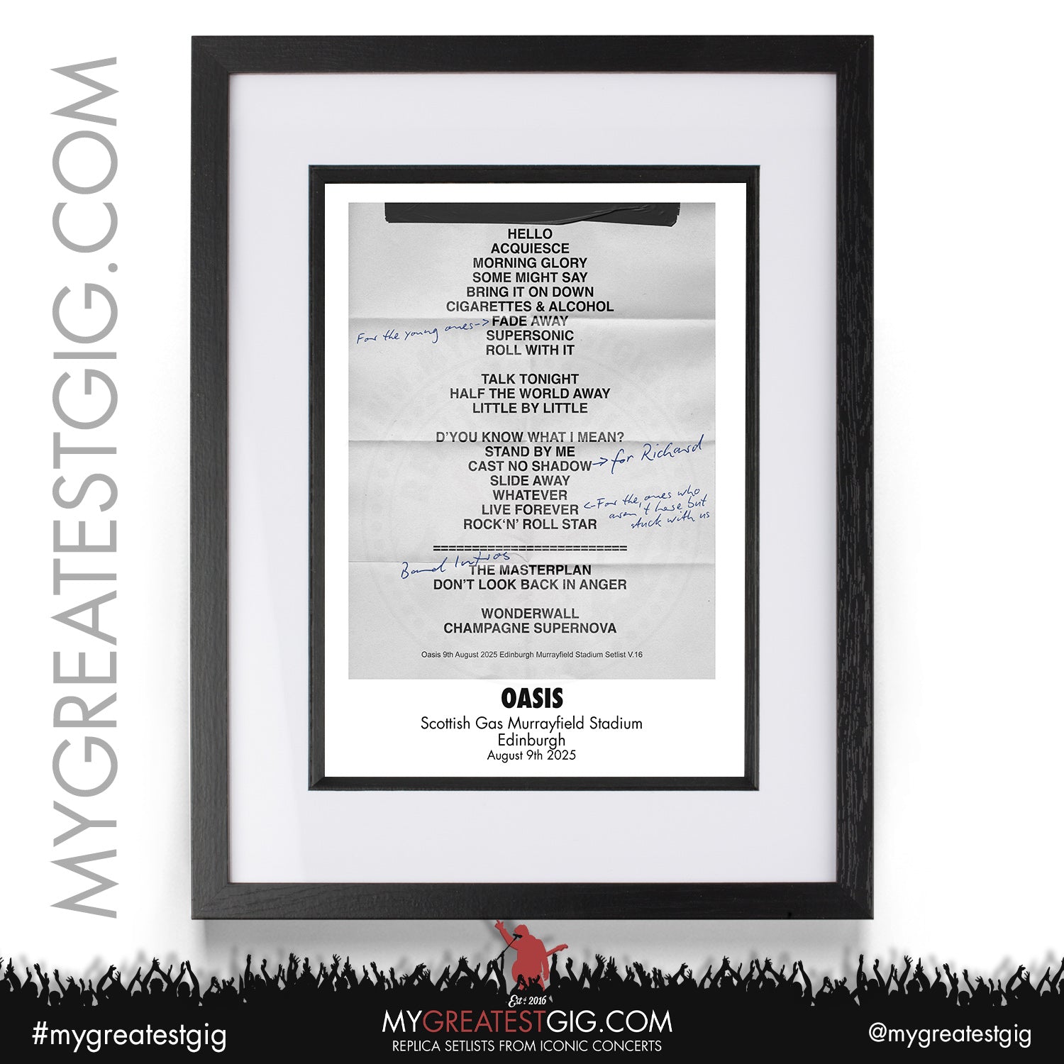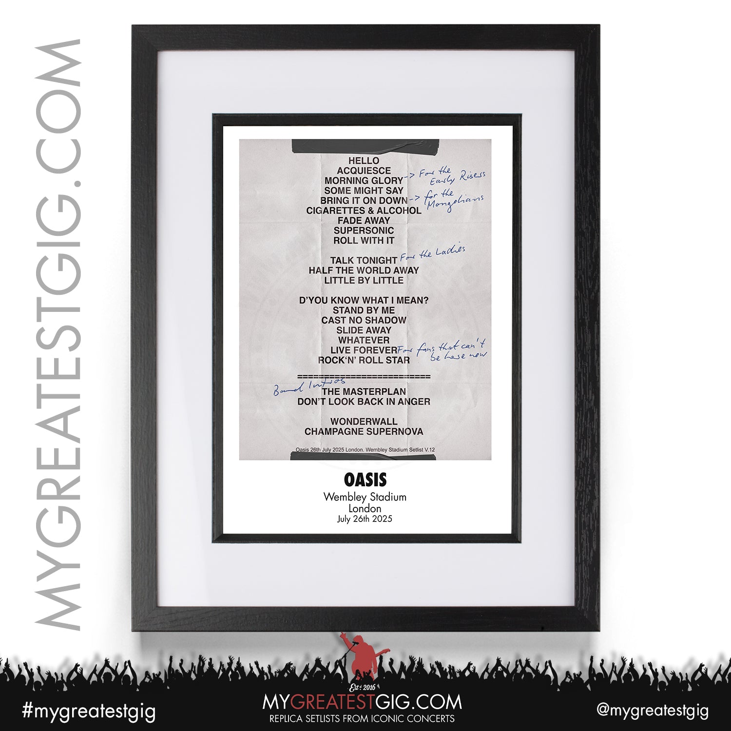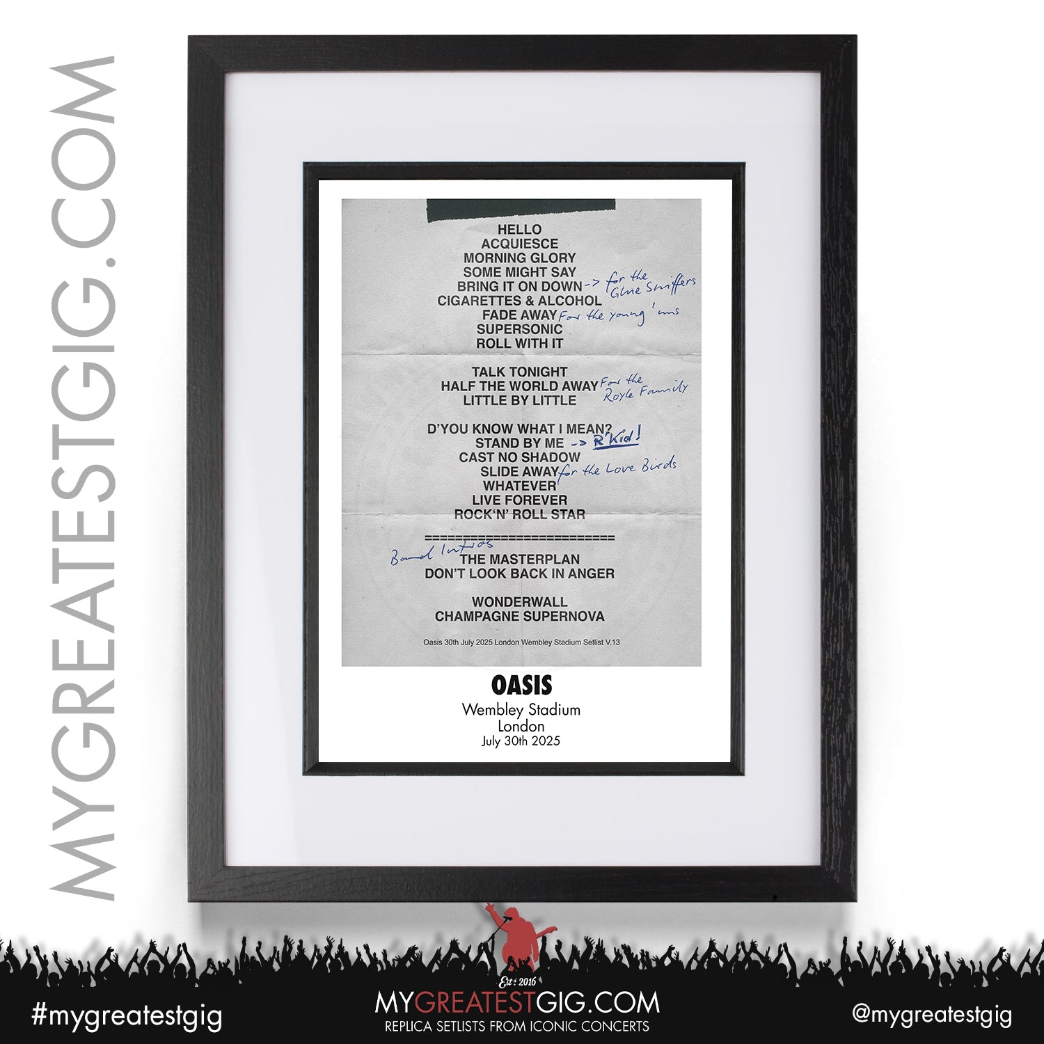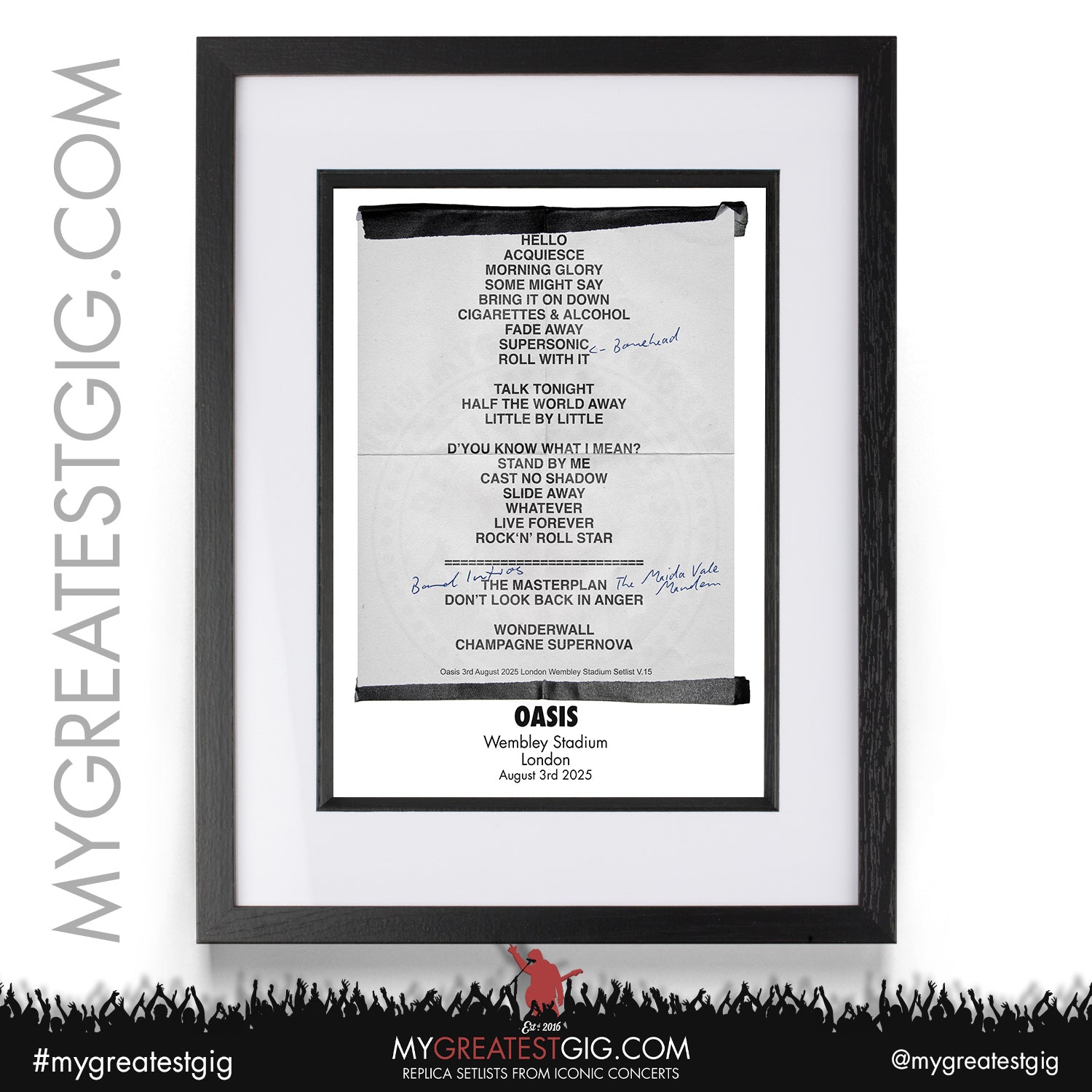 The wait is over. Oasis are back in 2025—and we’re celebrating their first live shows since 2009 with accurate replica setlists from this once-in-a-generation tour. Whether you were belting out Live Forever at Wembley Stadium, reliving Manchester pride at Heaton Park, or witnessing history at Croke Park, this is your chance to own a piece of Britpop legend.