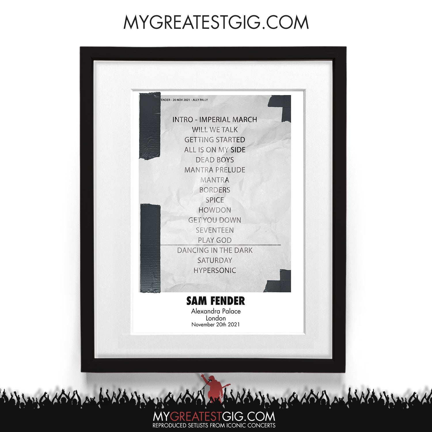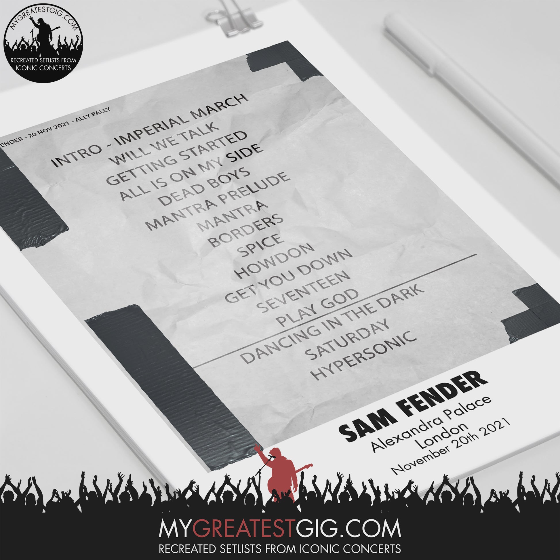 Sam Fender - London - Nov 20th 2021 Recreated Setlist Poster
