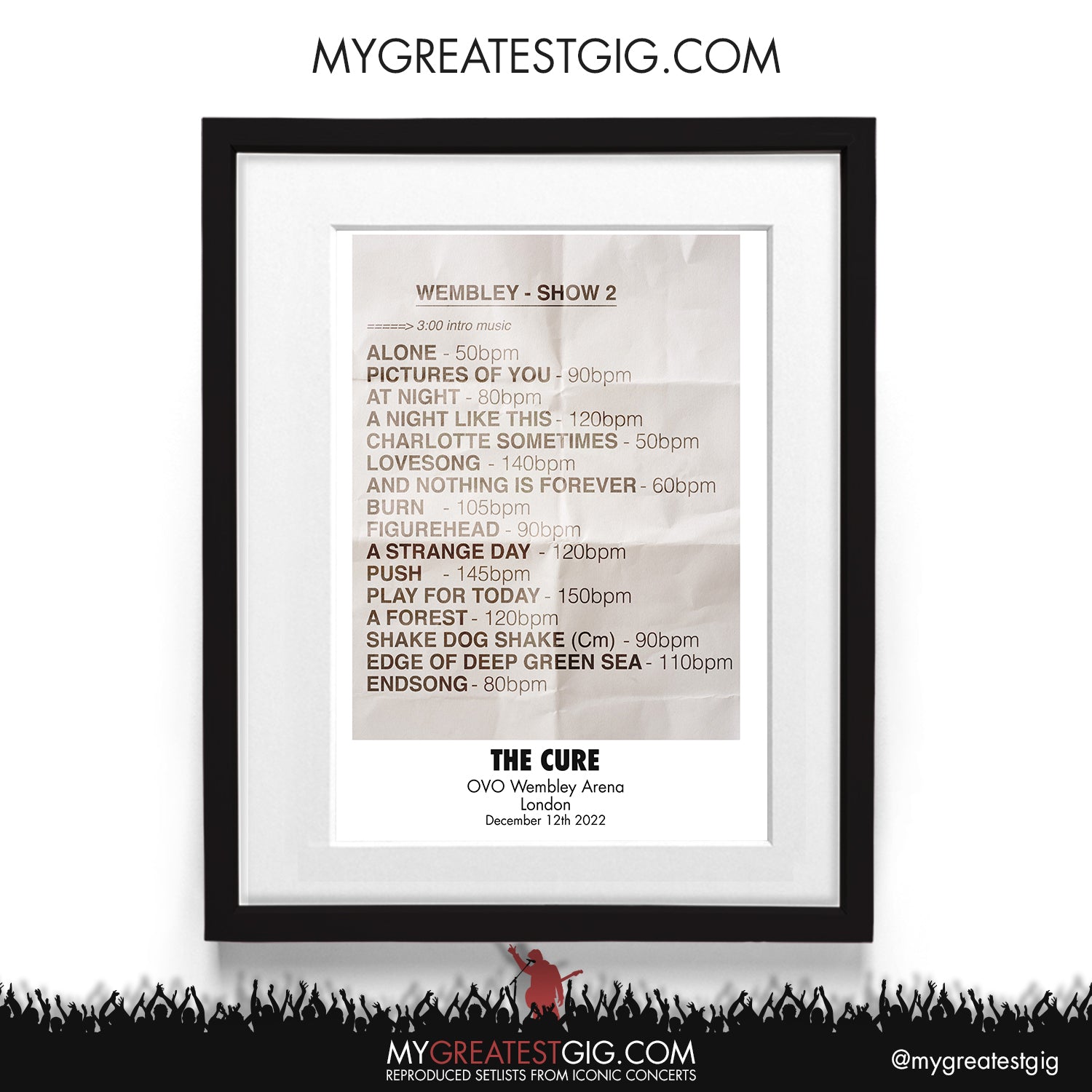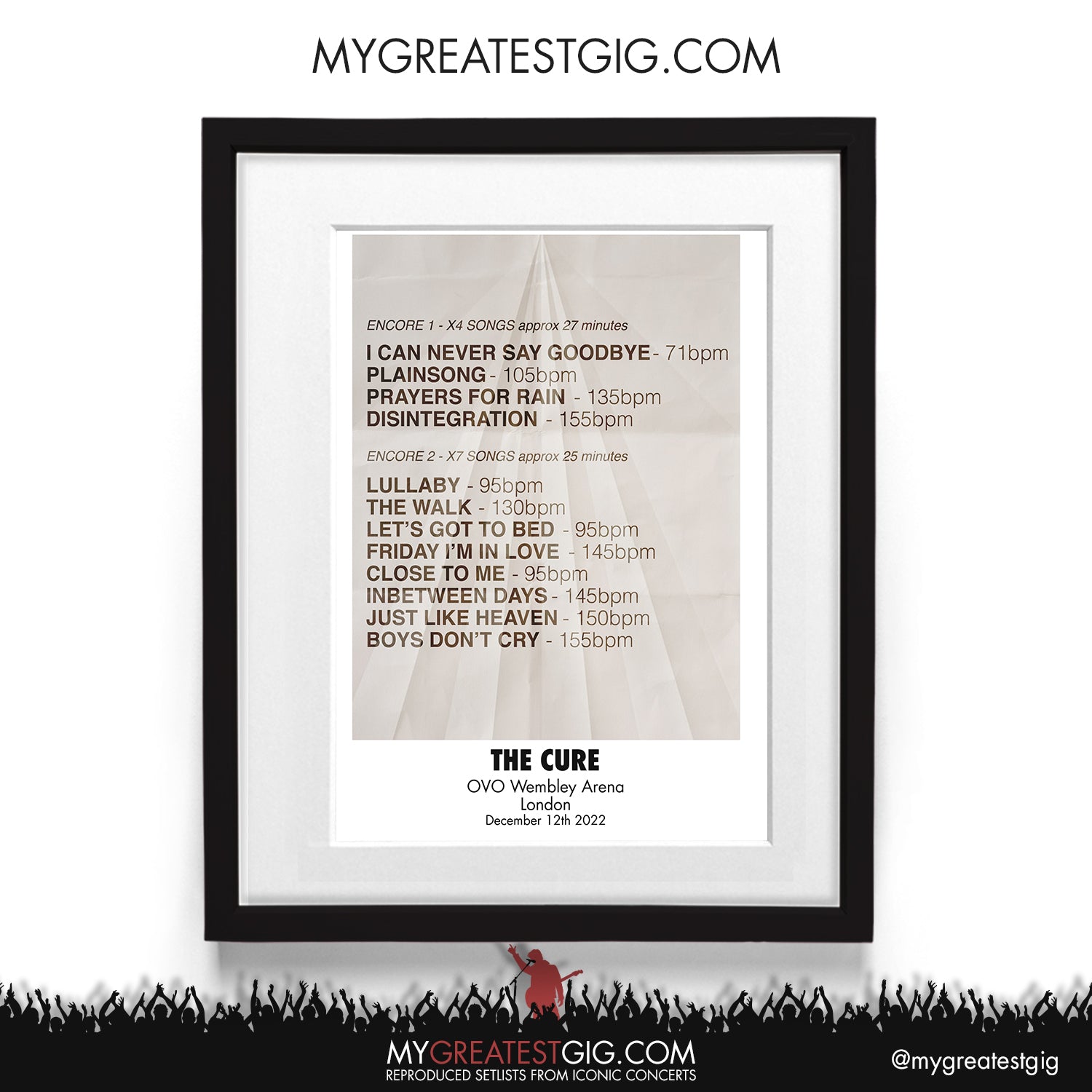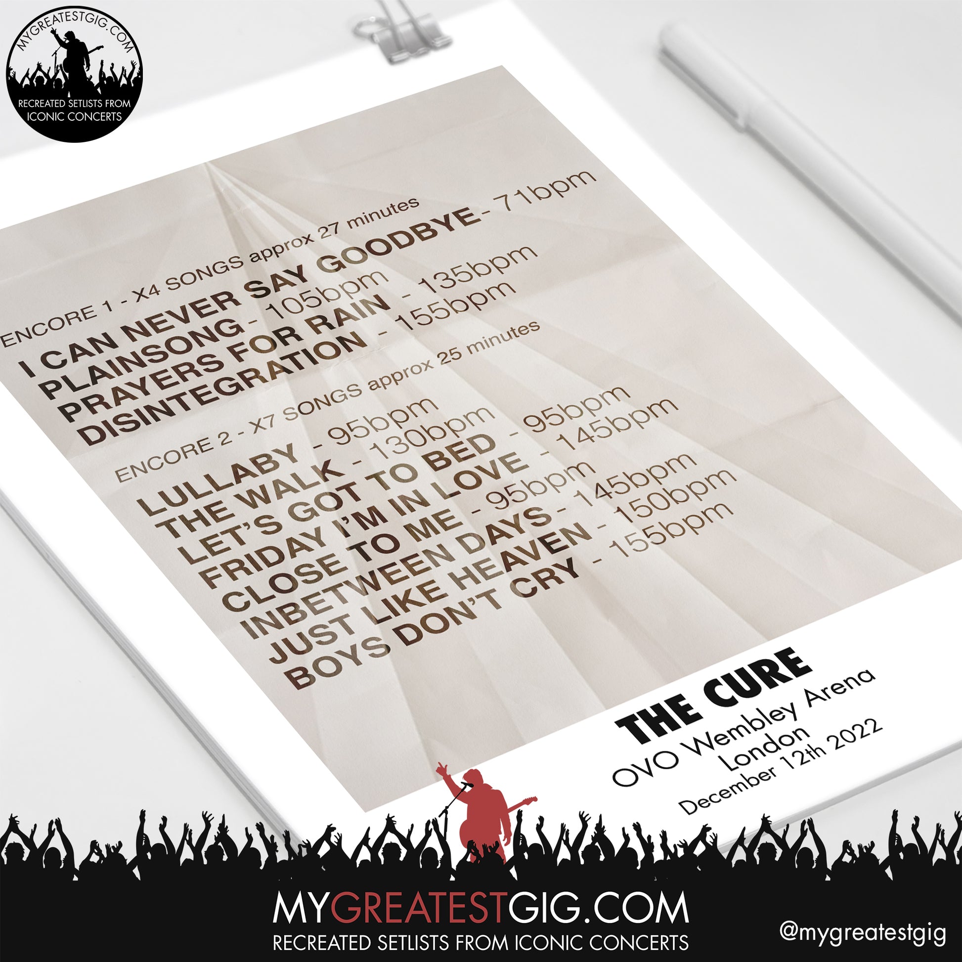 The Cure - London - Dec 12th 2022 Recreated Setlist Poster