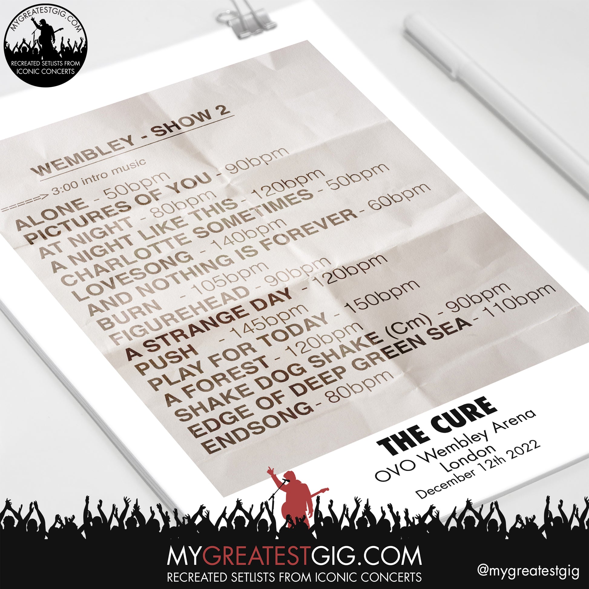 A Recreated Set List from the Wembley concert from the 2022 Cure tour