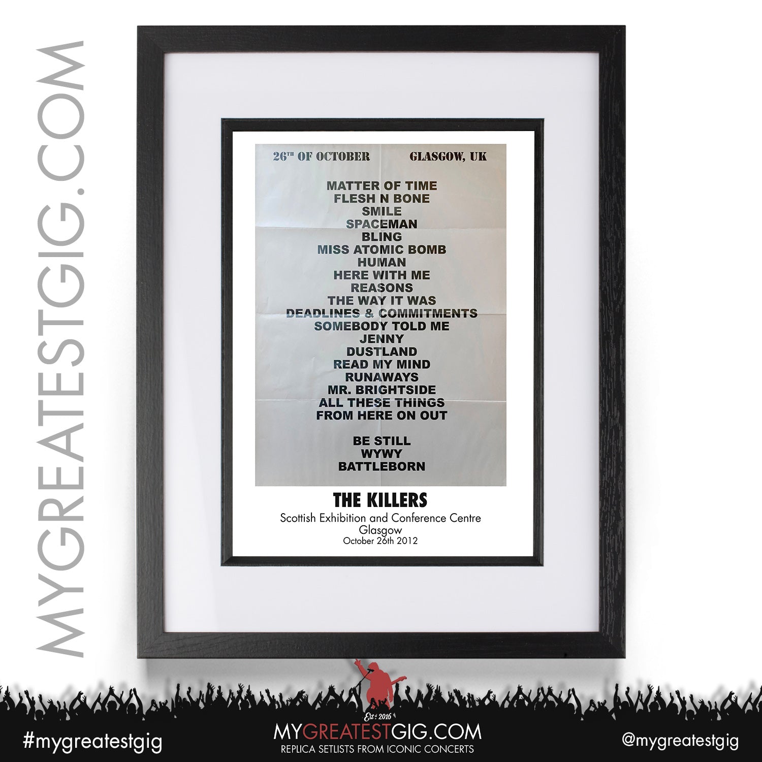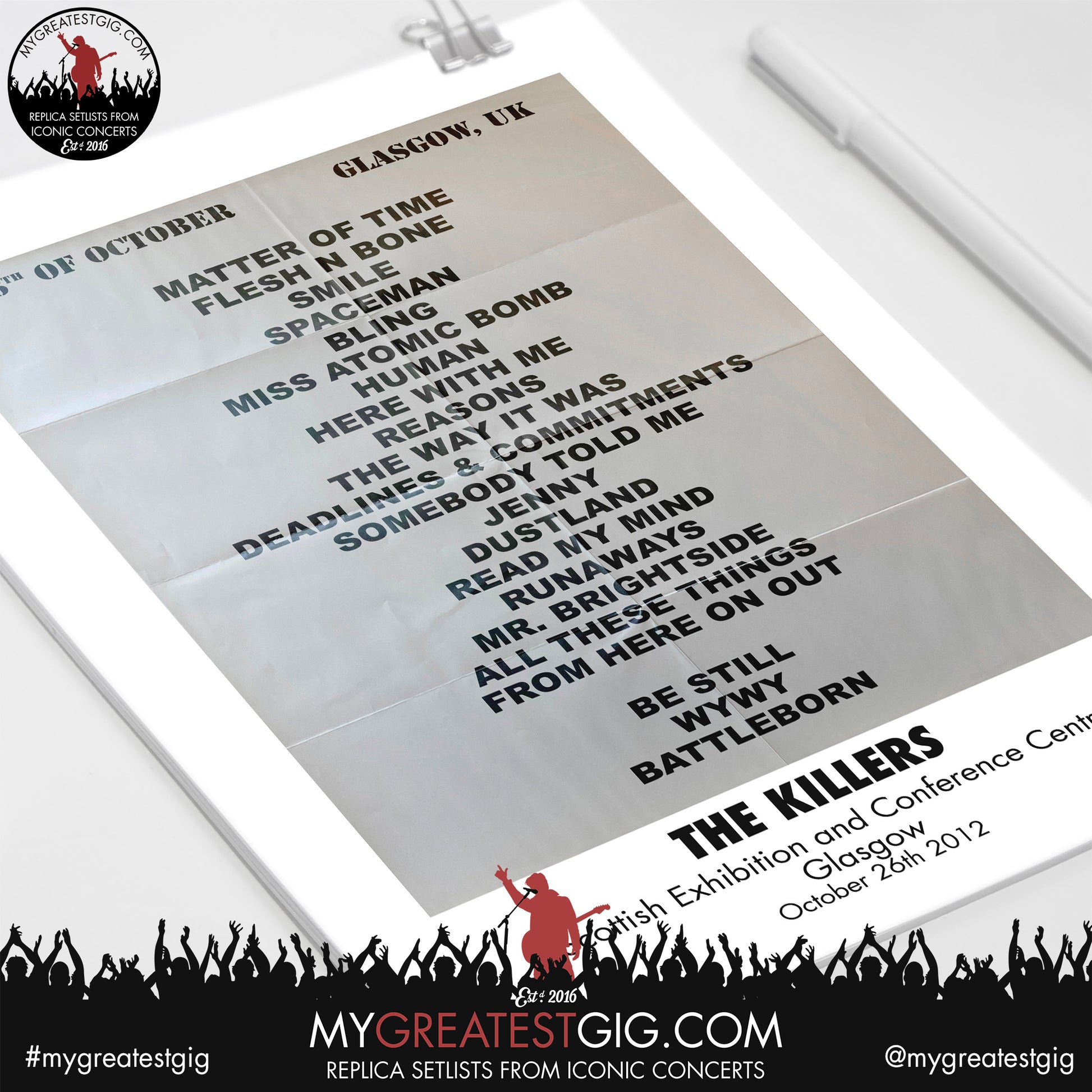 The Killers - Glasgow - October 26th 2012 Replica Setlist Poster